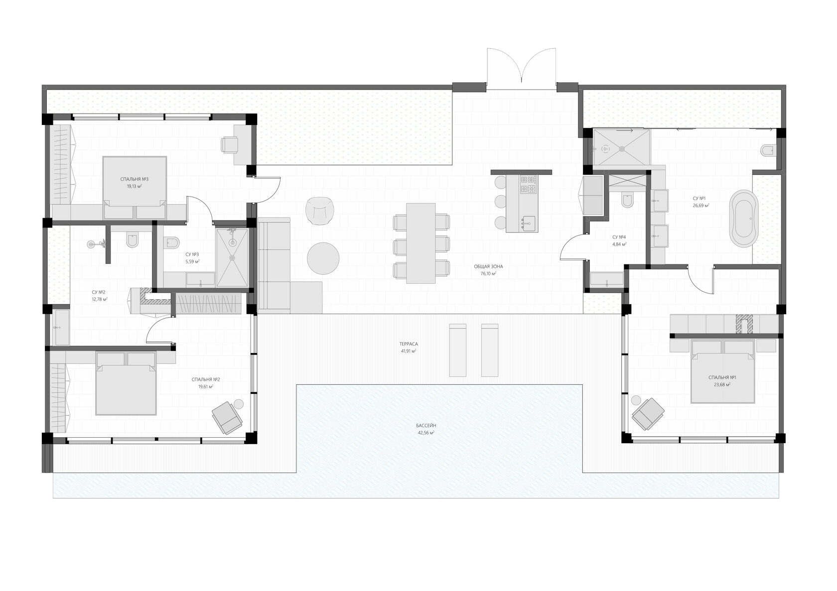 Площадь застройки (с бассейном):